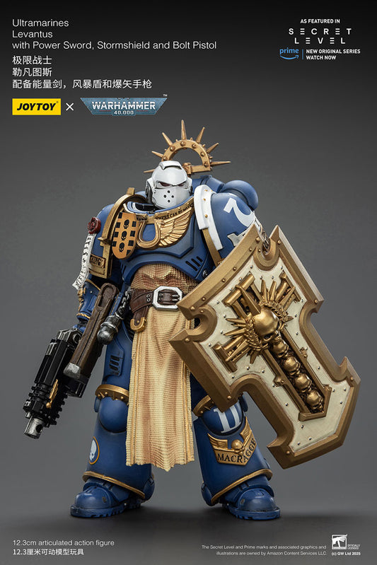Joytoy 1/18 Warhammer 40k Ultramarines - Levantus with Power Sword, Stormshield and Bolt Pistol
