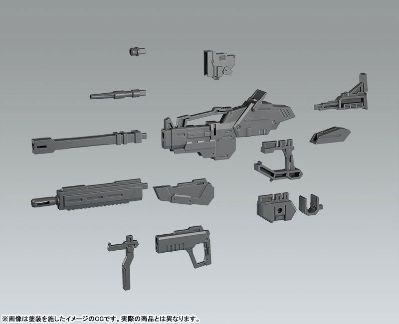 This 1/48 scale plastic model stands at approximately 6.9 inches in height and its joints are articulated for easy posing. The world of Titanomachia has been faithfully brought into plastic model form under the close supervision of designer NAOKI. The included rifle can be displayed in a variety of forms through interchangeable parts. Two blades are included and can be attached at the waist. Two pilot miniature figures in the same scale as the mecha are included. (Miniature figure must be painted.)