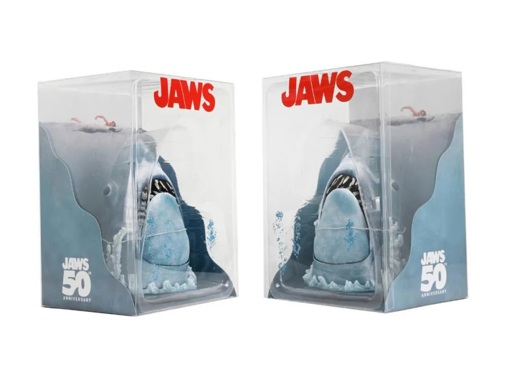 Designed to look like a three-dimensional version of the poster, the shark comes in a clear window box with a backdrop insert that recreates the classic poster. It’s a must-have tribute piece for Jaws fans!